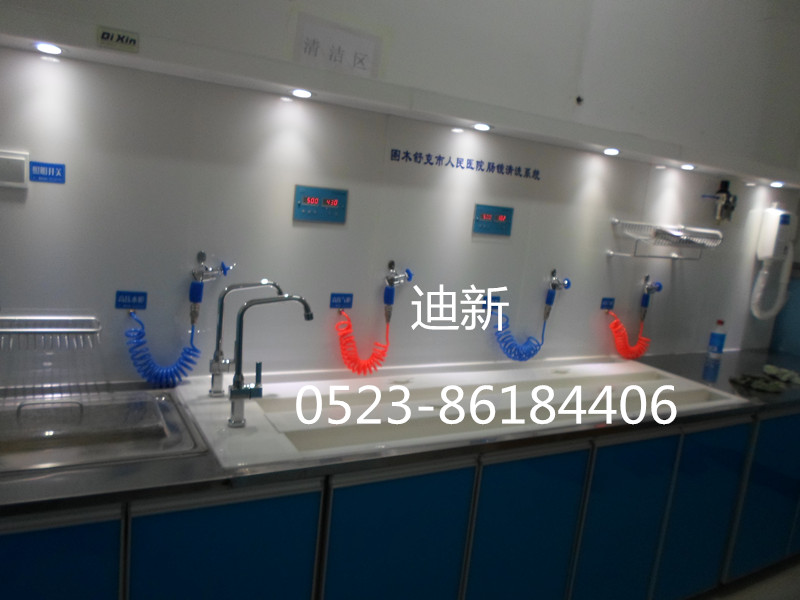 3. 安裝完好配備上、下水管和接水龍頭,客戶只需5—10分鐘即可全部安裝完畢、投入使用。為方便醫(yī)務(wù)人員的清洗工作,內(nèi)窺鏡清洗浸泡槽下部特設(shè)有儲(chǔ)存柜,可存放試劑、手套等醫(yī)療器械。
